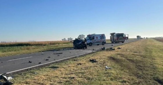 Dos personas muertas y otra herida fue el saldo de un choque frontal entre un auto y una camioneta en la ruta provincial 90, entre las localidades de Alcorta y Carreras, en la zona sur de la provincia.