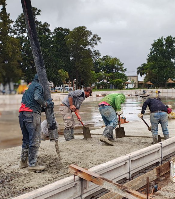 Durante las últimas semanas, la obra ingresó en una etapa clave con la llegada de camiones de hormigón para completar una de las alas del solárium, que contará con amplios sectores laterales y reposeras.